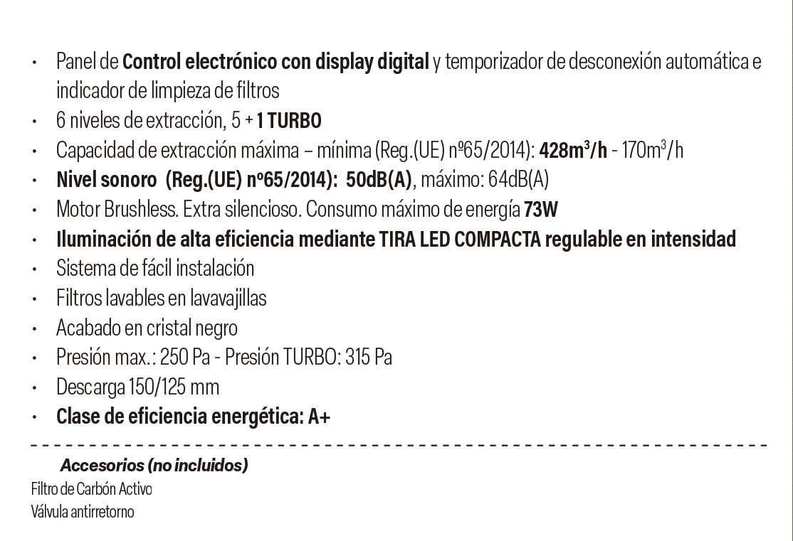 Capacidad de extracción hasta 428 m³/h, perfecta para mantener el aire limpio.