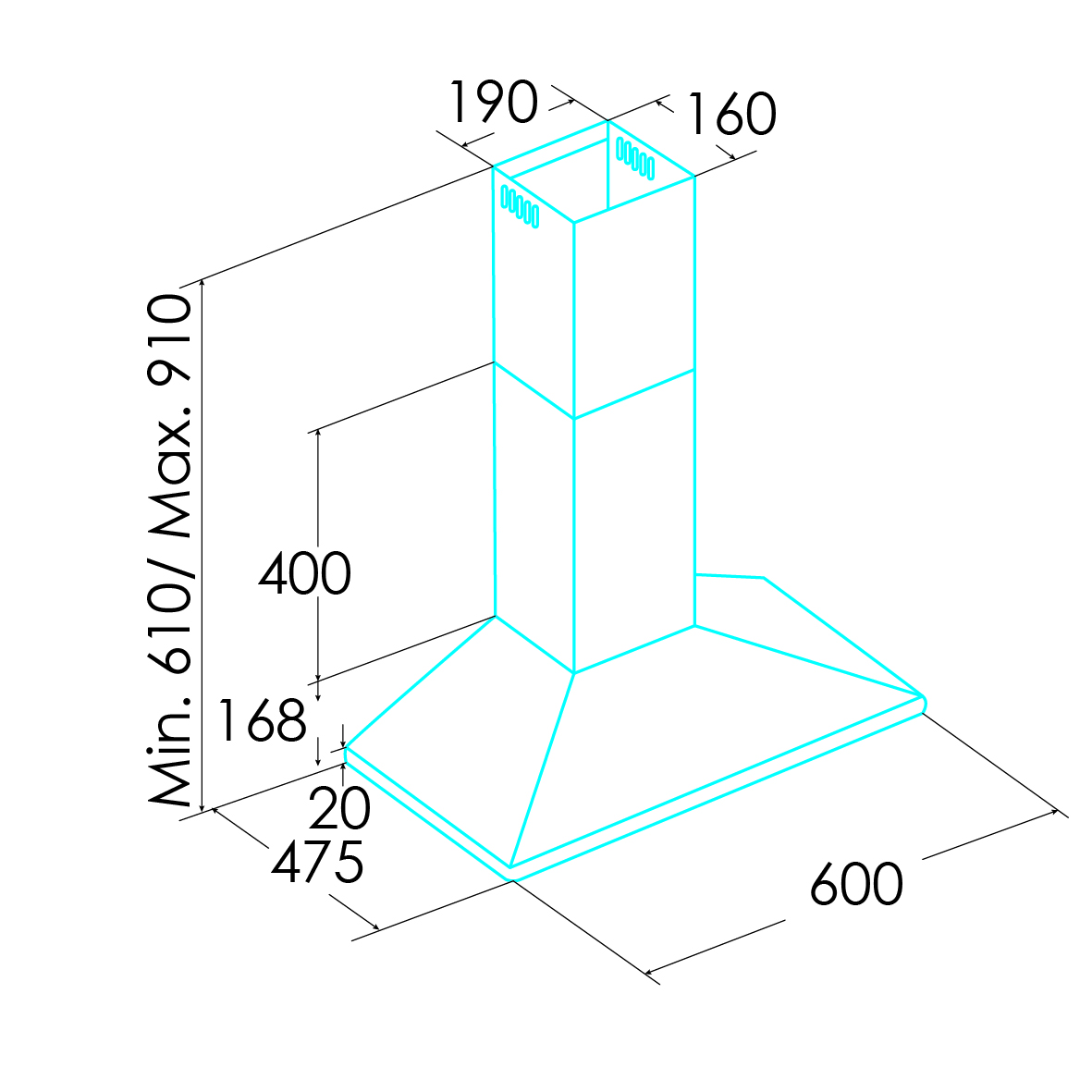 Potente extracción de hasta 477 m³/h con 3 niveles de intensidad y control mecánico por botones, para eliminar olores y humos de forma silenciosa y eficaz.