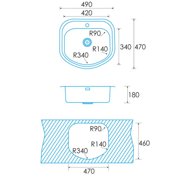 Dispone de una cubeta cuadrada de 18 cm de profundidad, ideal para lavar ollas y utensilios de forma cómoda. Incluye un rebosadero integrado y está preparado para añadir el grifo sin complicaciones.