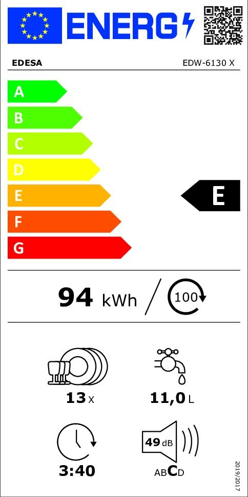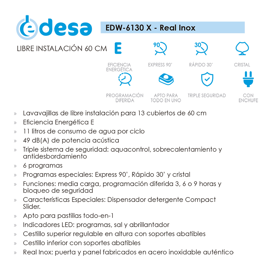 Lavavajillas Edesa EDW-6130 X (Libre instalación)