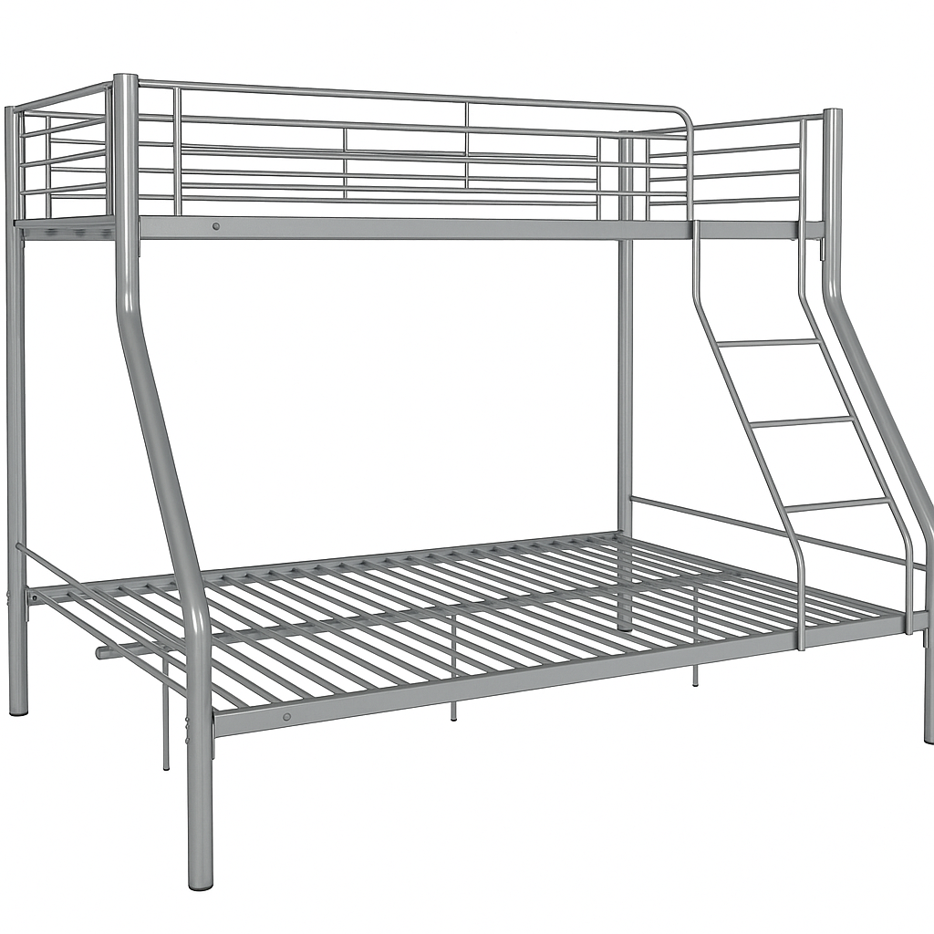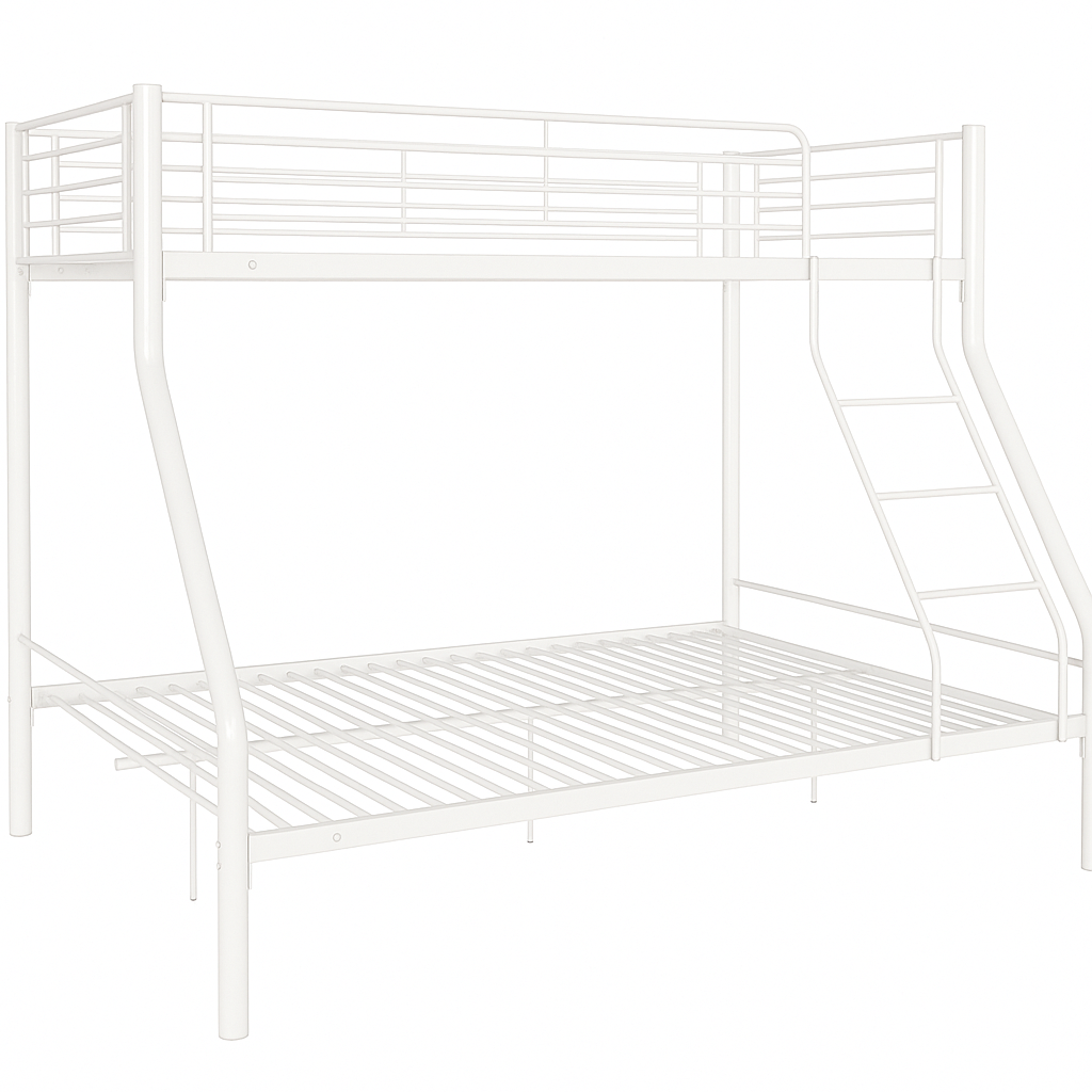 Fabricada en resistente tubo metálico, está disponible en dos acabados elegantes y cuenta con una cama inferior de 135×190 cm y una superior de 90×190 cm, ideal para ahorrar espacio en dormitorios familiares o juveniles.