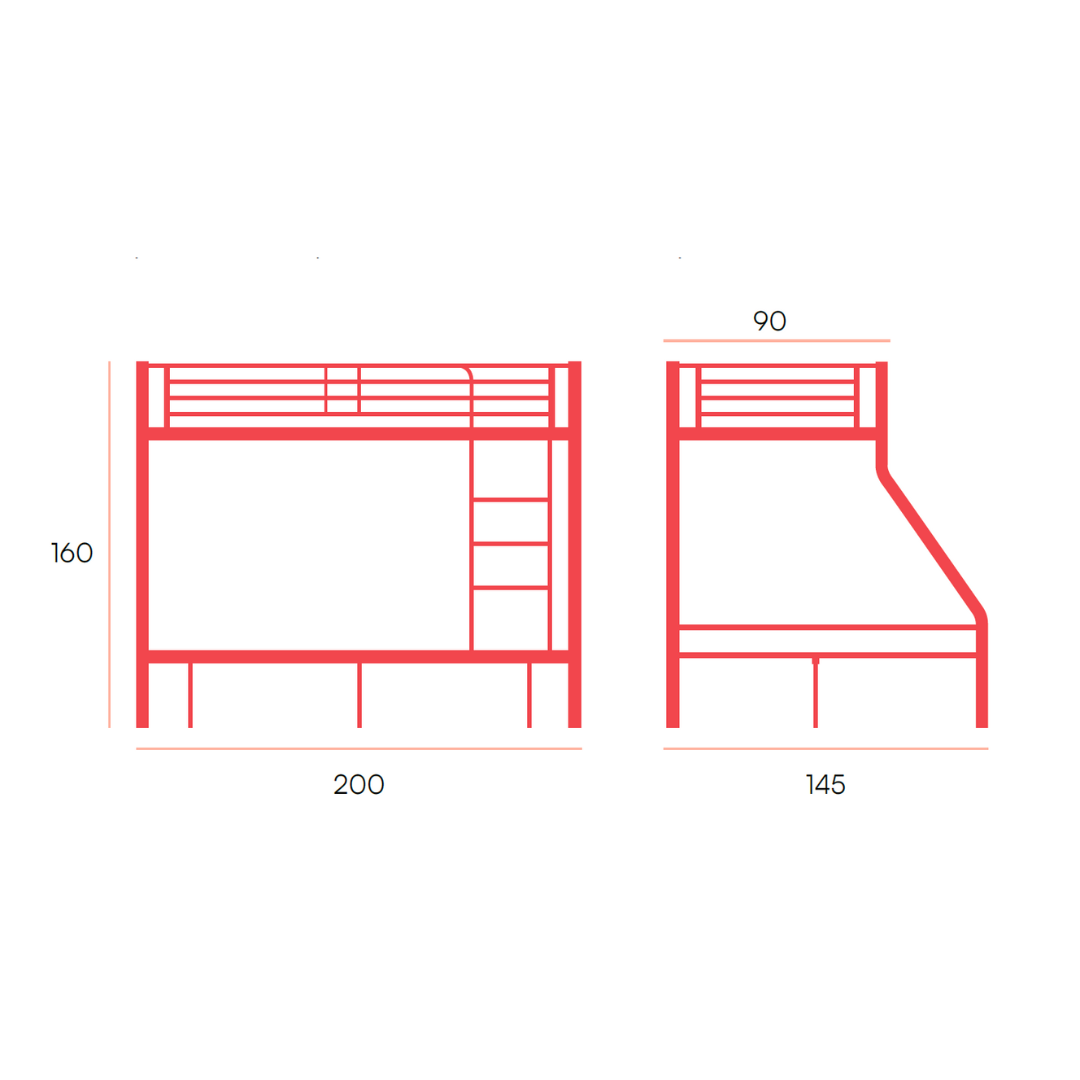 Su estructura permite montar la escalera y el quitamiedos tanto a la derecha como a la izquierda, adaptándose perfectamente a cualquier distribución del cuarto. Una opción práctica, segura y con estilo para aprovechar cada rincón del dormitorio.