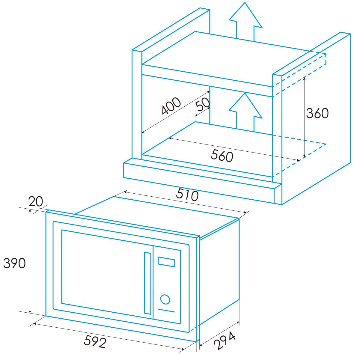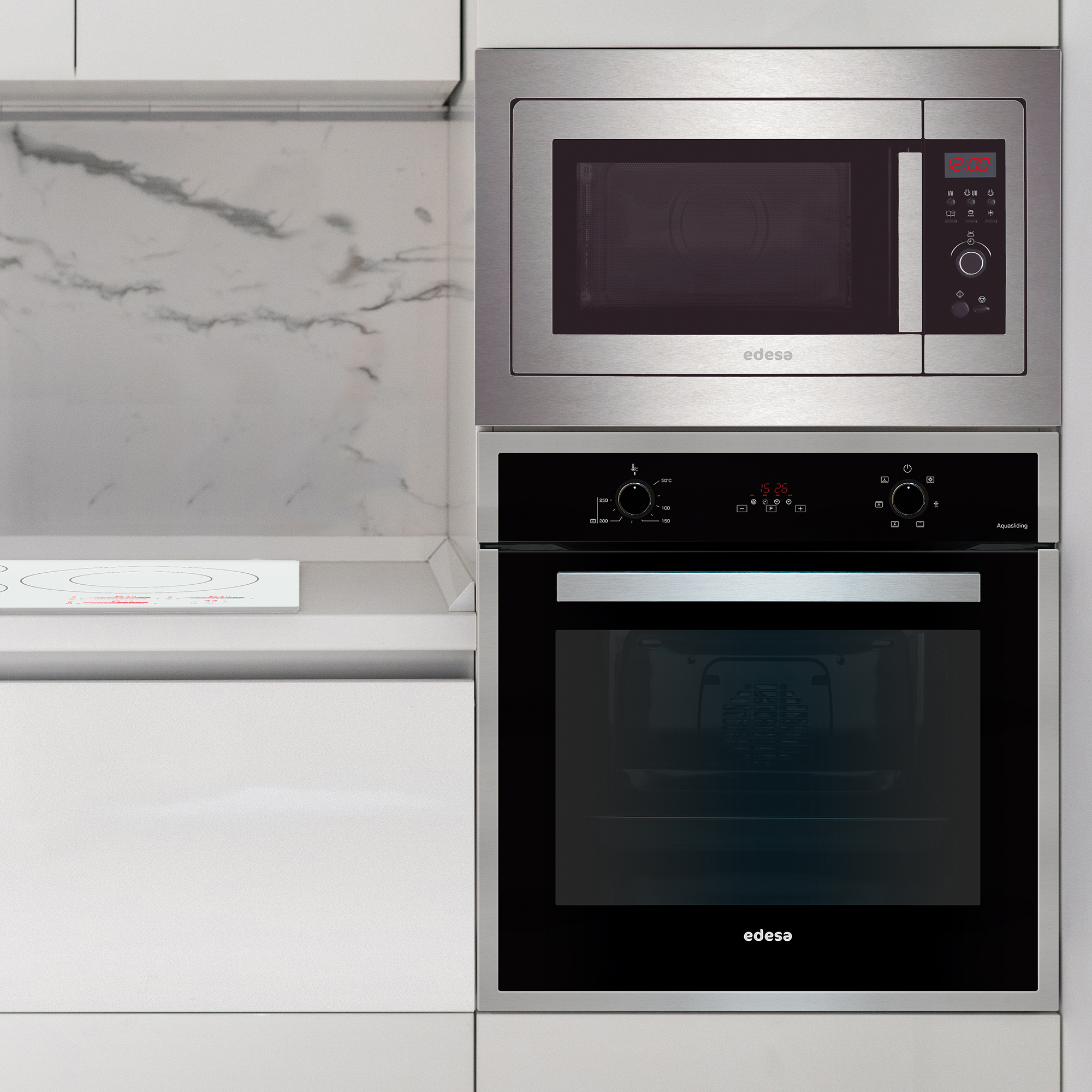 Este microondas de encastre combina practicidad y estilo: cuenta con una capacidad de 20 litros, acabado en acero inoxidable y apertura mediante botón Push. Su panel electrónico con pantalla LED roja y temporizador digital (hasta 60 minutos) lo hace muy intuitivo.